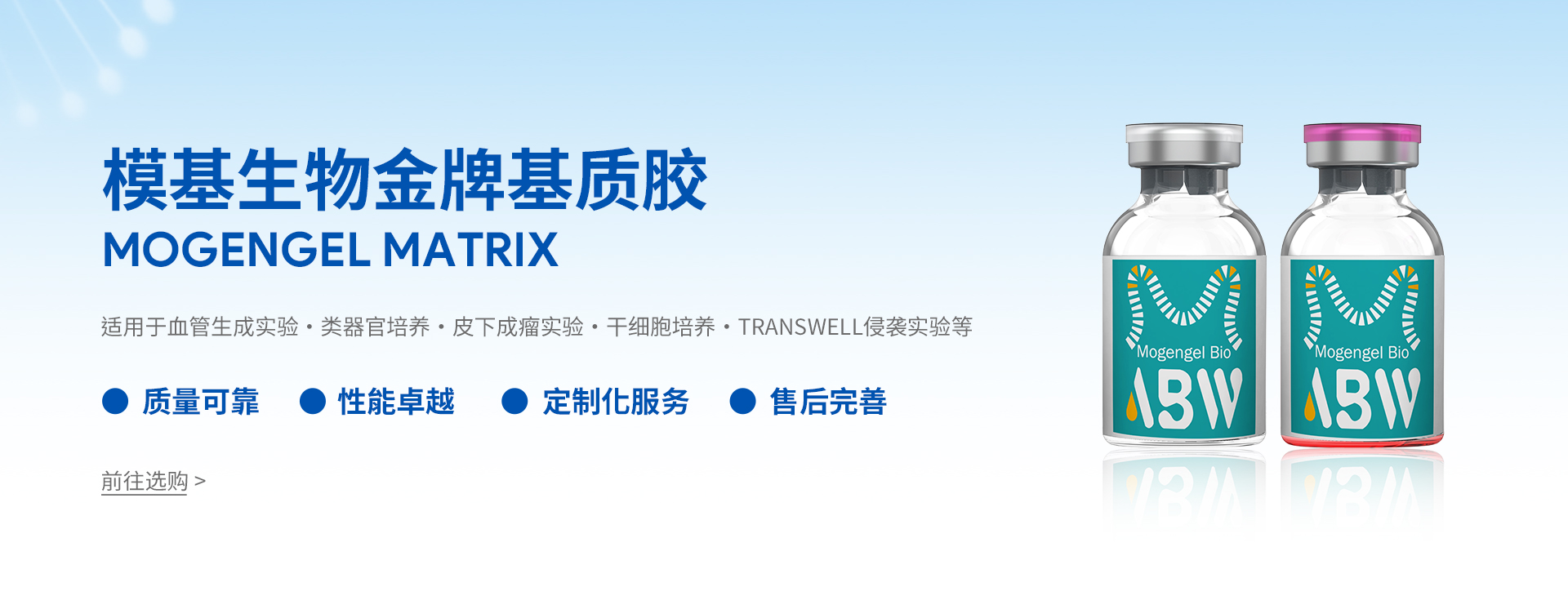 廈門模基生物科技有限公司致力于3D細胞培養(yǎng)核心原材料的研發(fā)與產業(yè)化升級,是國內一家從科研做起,從實驗研究中一路走來的全流程自主研發(fā)、自主生產的企業(yè)。目前公司的產品有基質膠、類器官培養(yǎng)基、細胞因子、3D細胞培養(yǎng)耗材、3D細胞培養(yǎng)智能顯微鏡等。公司擁有4大技術研發(fā)中心:分子克隆和細胞編輯中心、實驗動物中心、蛋白表達和純化平臺、類器官質檢系統和自動化。